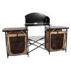 We must eat! What better way to cook then with this functional camp kitchen that is collapsible and light weight making it easy to bring everywhere with you. Carry bag included. Weight capacity: middle table 45 lbs, side tables 22 lbs. 31"(H) x 65"(W) x 20"(D). Sierra/black.